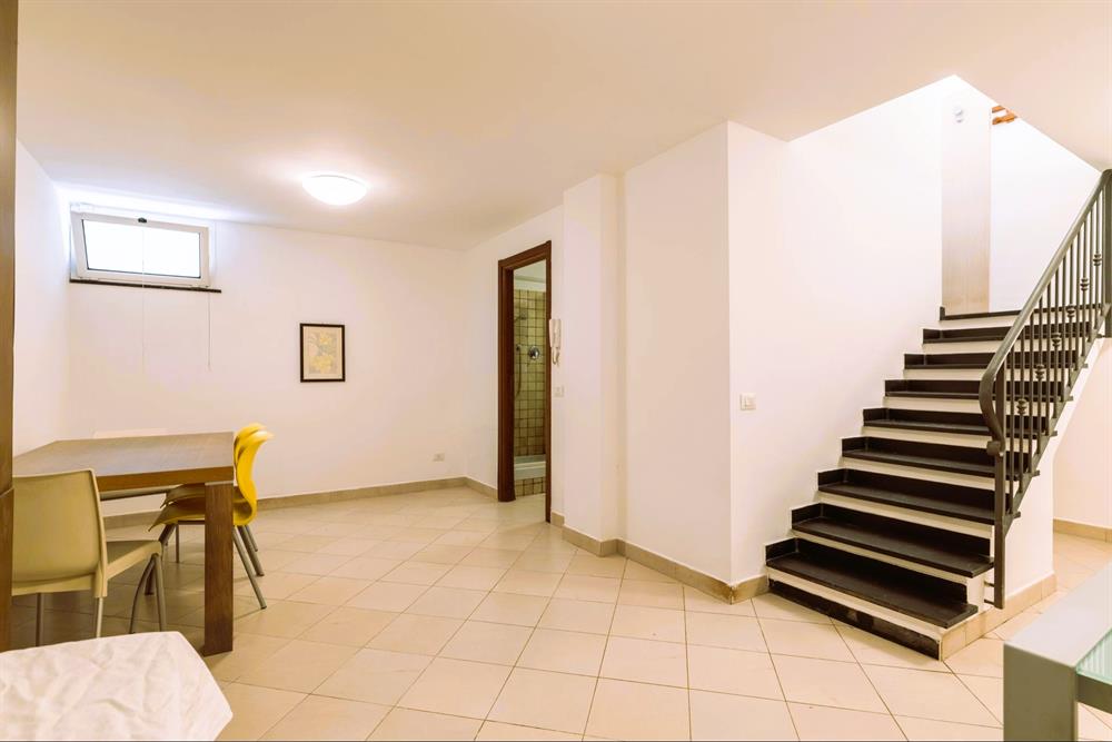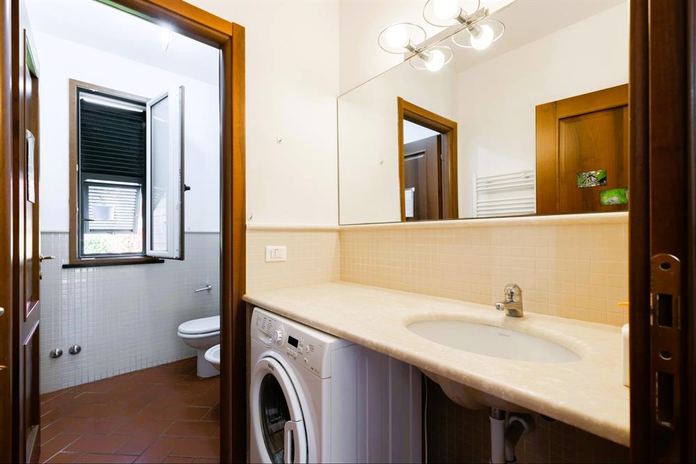 Il piano seminterrato ospita un grande locale adibito a lavanderia.